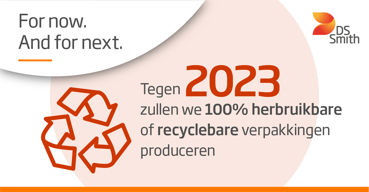 - De cirkel sluiten door slim design– Tegen 2023 produceert DS Smith 100% herbruikbare of recyclebare verpakkingen en is het doel dat tegen 2030 al zijn verpakkingen gerecycleerd of hergebruikt worden.