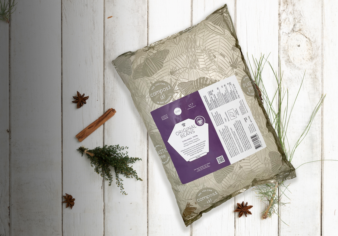 Het ambachtelijke chocoladebedrijf Original Beans zet zich al tien jaar in voor duurzame productie van chocolade. Het bedrijf lanceert nu voor haar 2 kg couvertures verpakking een composteerbare zak.
