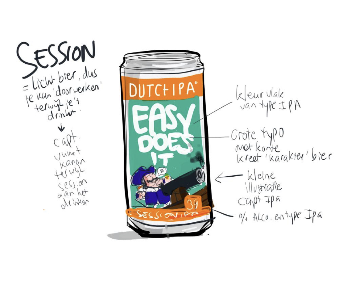 Iedere IPA heef zijn eigen verhaal. Voor Session IPA is dat: ‘In de tijd van kapitein IPA werd bier gedronken als water. Maar dat schiet natuurlijk niet op als je werk deed waarbij je scherp moest blijven. Daarom werd Session IPA geïntroduceerd. Een IPA met een iets lager percentage alcohol, zodat je na een paar biertjes gewoon kan blijven doorknallen. Easy does it!’