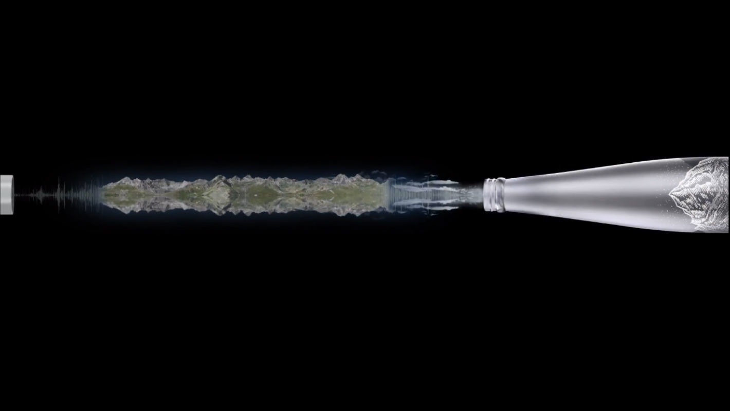 Piramidevorm De fles is piramidevormig en exclusief ontworpen voor de geluidsfles. Volgens de producent straalt de verpakking de versheid en zuiverheid van de Himalaya uit en onderstreept het geluid deze beleving. Om de lancering te onderbouwen werd een tijdreisfilm gemaakt van een waterdruppel van 20 jaar in de Himalaya. De film volgt het water van landbouw en waterlandschappen tot de bron in de toppen van de Himalaya.