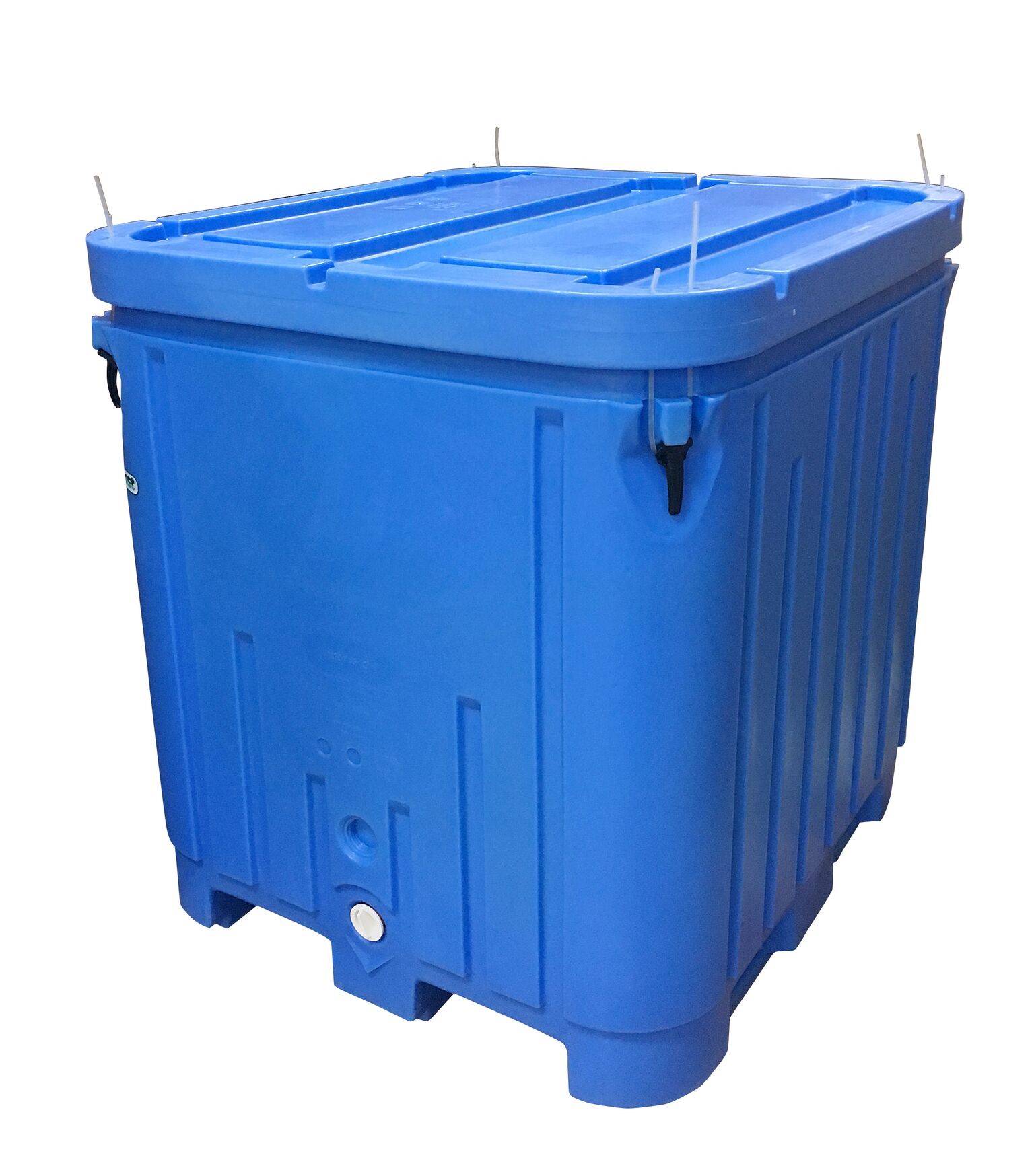 Het ontwerp van de Sæplast DXS335 1000 liter PUR-container is verbeterd om een compactere en gestroomlijnde functionele container te worden die de handling verbetert. De herbruikbare materiaalcontainer voor koeltransport is speciaal ontworpen voor de visindustrie en is vervaardigd uit een 100% polyethyleen dubbelwandige schaal van voedingskwaliteit met een polyurethaan isolatiekern.