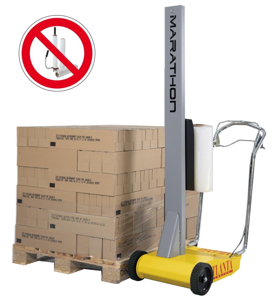 ‘Uniek’, zegt Jan-Paul Bergraat van Idépack, ‘doordat hij 100% mechanisch is en met machinerollen wikkelfolie werkt tot 17,5 kg en tot wel 3000 meter per rol. Deze machine is voor iedereen die nu met de hand wikkelt interessant. Machinerollen zijn voordeliger dan handrollen en met de hand wikkelen is bijzonder on-ergonomisch. Door de lage aanschafprijs is deze wikkelaar voor iedereen bereikbaar, ook voor bedrijven die maar 5 pallets per dag wikkelen. De aanschafprijs en flexibiliteit is het enorme voordeel ten opzichte van andere wikkelaars. Ook voor grote of lange ladingen is de Marathon super handig.’