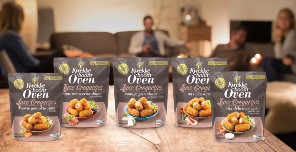 Kwekkeboom heeft onlangs haar ovensnacks uitgebreid met Luxe Croquetjes. Voorantwoordelijk voor het verpakkingsontwerp van deze aanvulling is het Haagse designbureau Mountain.