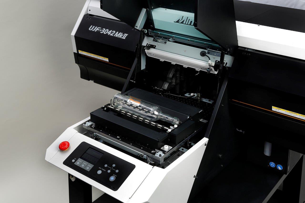 As a technology demonstration, the UJF-3042Mkll direct-to-object printer will run live on the Mimaki stand. This on-demand printer will be equipped with Mimaki’s Kebab option, enabling 360-degree direct printing on cylindrical products.