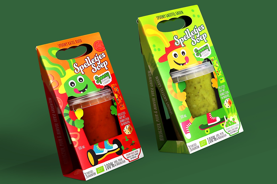 Verpakkingsbureau Brum Design heeft samen met bedrijf Spoony en twee andere ontwerpers een productverpakking ontworpen voor een gelijknamige biologische groentesoep voor kinderen.
