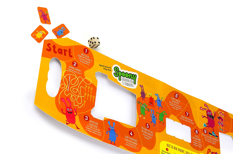 Onderzoek heeft uitgewezen dat kinderen aangetrokken worden door een verpakking waarop een karakter staat dat hen blij aankijkt. Illustratrice Sylvia van Ommen tekende “Spoony”: een vrolijk figuurtje met wapperende oren. Ontwerper Rob Donders zorgde voor de uiteindelijke versie van de verpakking.