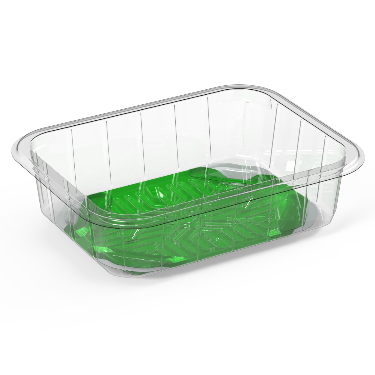 Het nieuwe PET vleesbakje is onlangs met goed resultaat uit de testfase gekomen en productierijp. Het blijkt overigens ook geschikt te zijn voor groente en fruit. Bij de GravityTray komt het vrijgekomen vloeistof uit het product automatisch via trechtertjes in de onder gelegen kamer van de bak terecht. Deze 'onderkamer' is een apart compartiment en zodra de vloeistof in dit compartiment is geïsoleerd, kan deze niet meer in contact komen met vlees en vis, zelfs als de GravityTray op zijn kant of ondersteboven wordt gedraaid. Omdat de GravityTray geen vezels heeft, is het risico dat deeltjes van de verpakking kunnen "plakken" op het vlees of vissen en worden geconsumeerd, volledig weggenomen. Een extra mogelijkheid is de afsluitende bodemfolie te voorzien van branding of aanvullende productinformatie.