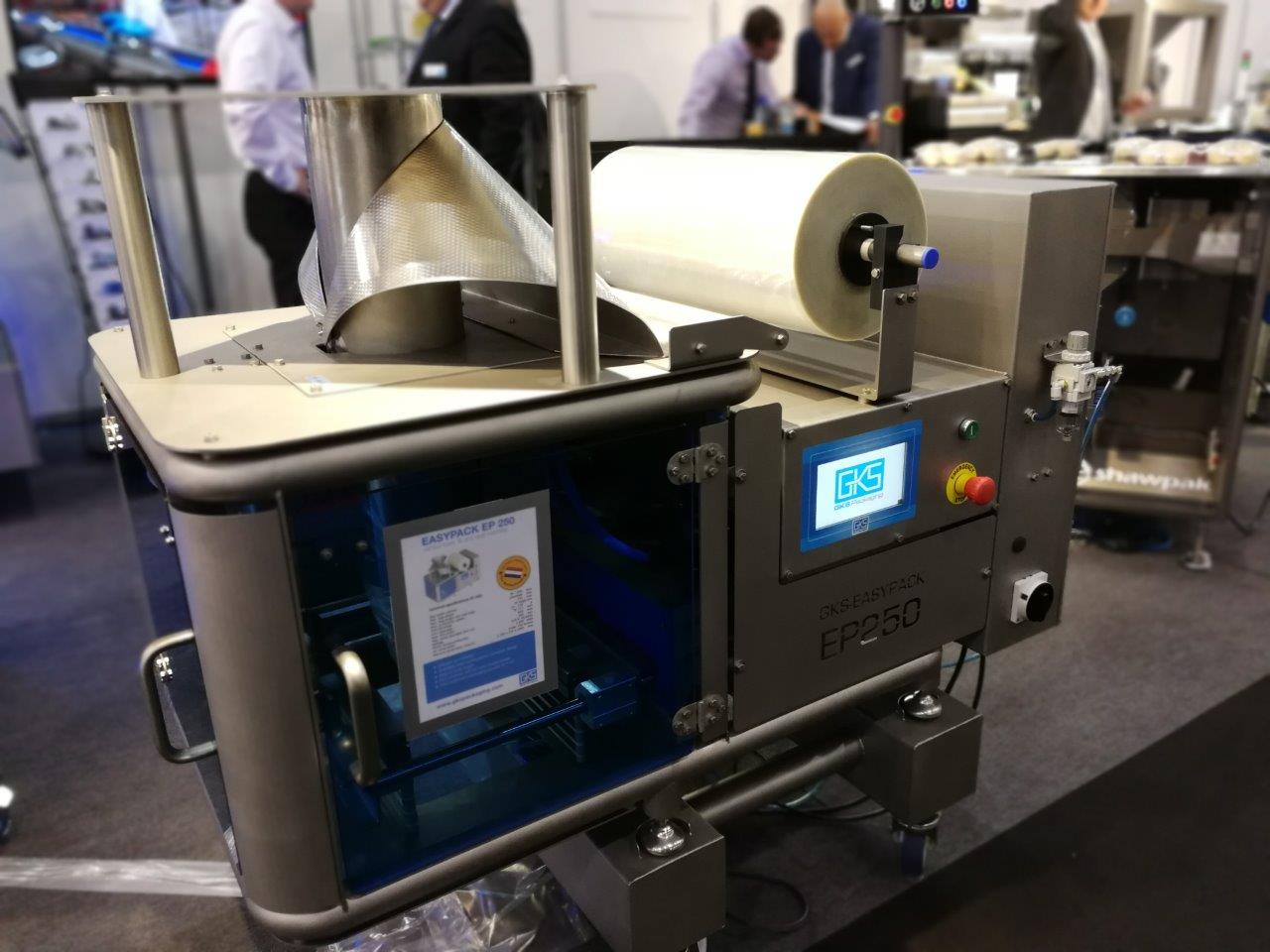 GKS toonde op Empack Brussel de Easypack EP250, opvolger van de EP200 die al 20 jaar verkrijgbaar is. ‘Het is een supercompacte machine die helemaal modulair is’, vertelt Ivo Geukes. Deze machine kan in 18 minuten uit elkaar worden gehaald en in 23 minuten in elkaar worden gezet. De machine bestaat in feite uit een verzameling modules. Tijdens onderhoud kunnen modules worden gewisseld, waardoor de machine gewoon kan blijven doordraaien.