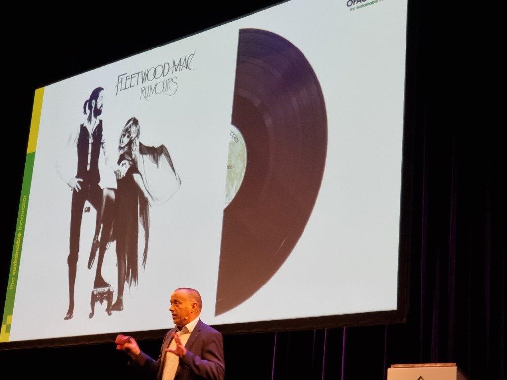 Bij Hangraaf is verantwoordelijkheid nemen de kern. Zijn boodschap en actiepunten: samenwerken, mensgericht blijven, focus op duurzaamheid, niet alleen op circulair en als laatste de trots op het familiebedrijf met unieke waarden en normen. Tot slot had hij ook een boodschap voor de markt: not for sale. Het bedrijf is niet te koop. Zijn vrouw Rita heeft een rol binnen het bedrijf en inmiddels is ook een deel van de volgende generatie werkzaam binnen de groep. Met een grote afbeelding van het album Rumours van Fleetwood Mac maakte Hanegraaf het nog even heel persoonlijk. 'Die plaat uit 1977 heb ik grijs gedraaid en één van die nummers spreekt mij extra aan: don’t stop thinking about tomorrow.' Maar hij verwees ook naar die andere grote hit op dat album: Go your own way. ‘Ik hoop dat het een duurzame is.’