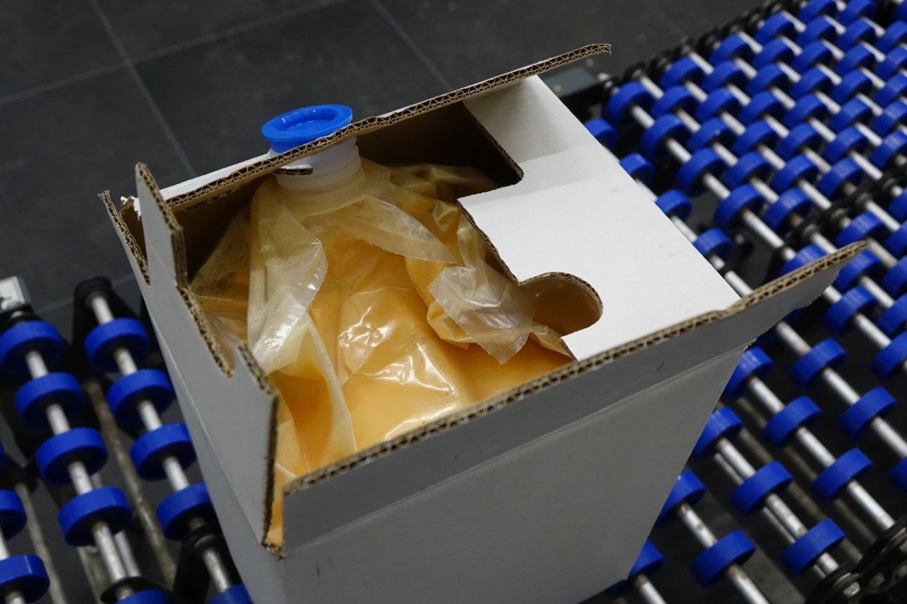 Vermeulen dacht in eerste instantie aan pouch zakjes van 1of 2 liter met her-sluitbare dop. ‘Het grote voordeel hiervan is dat we maar één afvulmachine nodig zouden hebben, de bag-in-box machine kan deze namelijk ook afvullen. Echter, de horeca werd hier niet enthousiast van omdat de zak flexibel en omstabiel is en daarom niet handig is in de keuken. Daarnaast zou deze nog steeds van plastic zijn en was de hersluitbare pouch prijzig.’